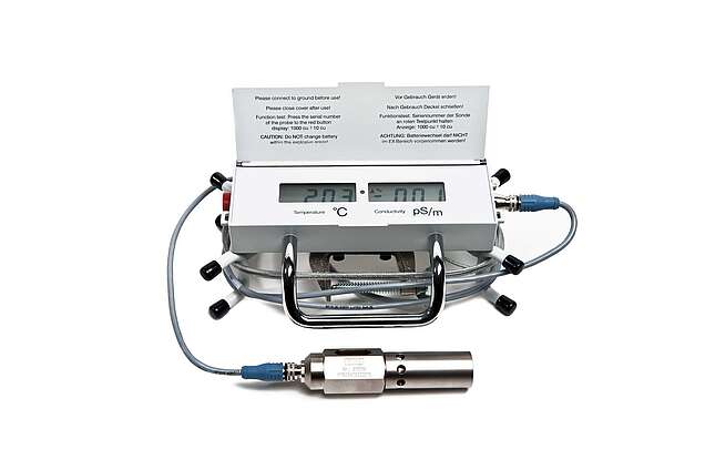 For mobile conductivity measurement, a portable measuring device equipped with a conductivity probe is used. The probe is immersed in the liquid to be measured. The measuring device generates a weak electric current between the electrodes of the probe. The liquid, which contains dissolved ions, conducts the current. The amount of current conducted is measured and converted into the conductivity of the liquid. The measuring device then shows the conductivity value on its display. Mobile conductivity measurement is quick and easy to carry out. The technology is also not susceptible to polarisation effects.