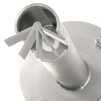 The extra-strong shaft (12 mm shaft diameter) is mounted with the permanently welded-on paddle under a protective cover so that it is optimally protected from heavy or abrasive bulk material. The blade swivels 120° underneath the protective roof. The swivel prevents material from wrapping around the shaft or jamming the blade and indicating false alarms. If the bulk material in the silo rises and blocks the pivoting blade, an electrical signal is emitted.