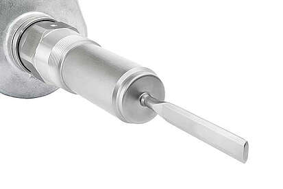 The MBA700 vibrating paddle has a highly sensitive sensor inside its robust housing. This makes it particularly suitable for light and powdery bulk solids. Jamming of bulk material (as with vibrating forks) is not possible with this single-rod measuring method. Deposits are effectively prevented due to the sword-like shape of the vibrating paddle.