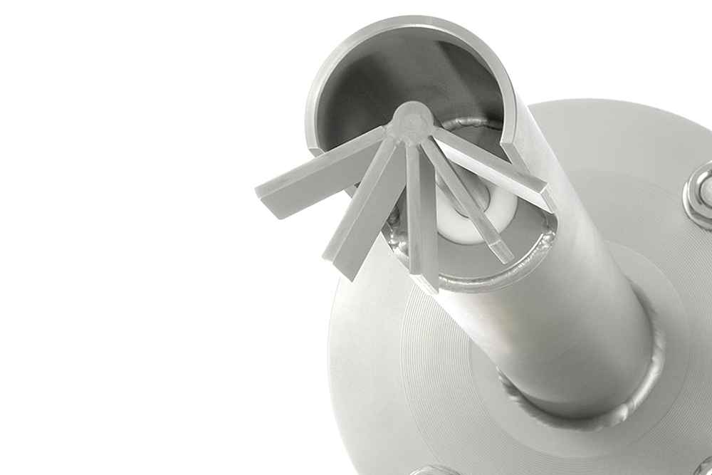 The key innovation of the MBA801 is the positioning of the digital swivel blade: the blade in the halfpipe is directed downwards by 90° and is therefore ideally suited for horizontal installation in silos. The level switch can therefore be used in places where level measurement was previously not possible. As both the shaft and vane are located under the roof of the halfpipe, they are fully protected from falling bulk material and can therefore also be used in the bulk flow. The extra-strong shaft with a diameter of 12 millimetres is mounted with the firmly welded-on vane under a protective roof so that it is optimally protected from heavy or abrasive bulk material. The falling bulk material has no influence on the measurement.